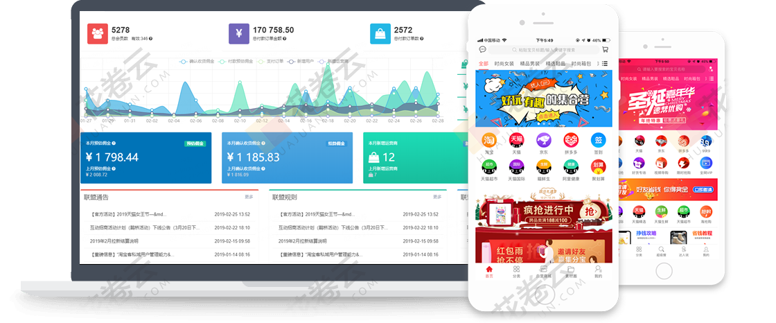 不管是营销功能,代理模式。还是APP体验细节,花卷云拥有超过40人团队的技术更新,提供永不间断的创新想法和行业理念。并获得淘宝联盟和多多进宝长期战略支持。让您在行业内永远保持领先地位。