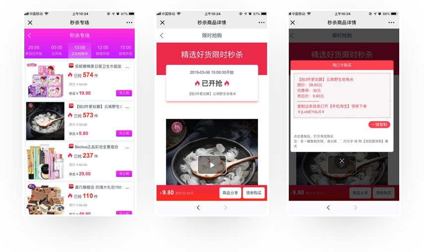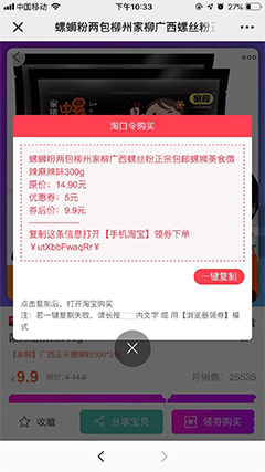 支持淘宝口令、标题、链接搜索,回复消息,即可自动返回相关优惠券信息