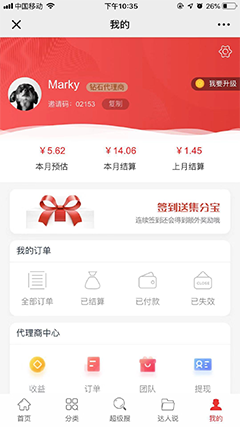 与APP数据完全打通,订单、收益报表、团队粉丝全部保持实时更新